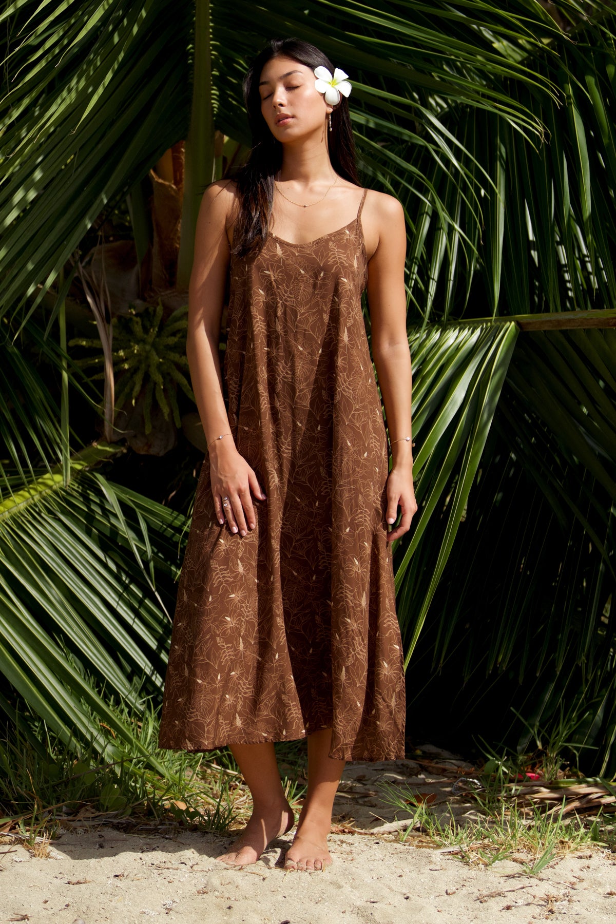 Crafted from breathable, eco-friendly rayon, this flowing dress drapes beautifully while keeping you cool and comfortable all day long. Adjustable straps offer a customizable fit, and a graceful leg slit adds just the right touch of movement and ease. Perfect for everything from casual outings to sunset strolls, this dress blends timeless style with conscious design.